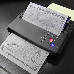 مشخصات پرینتر تتو (دستگاه استنسیل) 1- این نوع پرینتر از نوع حرارتی است. 2- حالت اسکن آن به صورت Cis است. 3- پهنای اسکن مؤثر 210 میلیمتر است. 4- برگههای در سایز A4 و A5 براحتی با آن چاپ میشوند. 5- برق مصرفی آن 110 تا 220 ولت است. 6- محتوای پک آن شامل؛ پرینتر، کابل، یک برگه کاغذ استنسیل و برگه راهنما است. 7- کاغذ استنسیل مصرفی آن سه برگی یا تک برگ است. 8- وزن آن 1/17 کیلو گرم است. 9- برگ گارانتی سه ماهه دارد. طریقه استفاده از دستگاه استنسیل دستگاه استنسیل را با دکمه کناری روشن کنید. قسمت بالایی را با فشار دادن زبانههای دو طرف دستگاه باز کنید. لایه محافظ کاغذ استنسیل سه برگی را بردارید. درست مشابه تصویر موجود در گالری کاغذ استنسیل را در آن قرار دهید. برگهای که طرح انتخابی روی آن چاپ شده را داخل دستگاه بگذارید و دکمه کپی (copy) را فشار دهید تا طرح پرینت شود. روی دستگاه بجز دکمه STOP و COPY چهار دکمه دیگر نیز وجود دارد. کارکرد آنها بدین صورت است؛ ♦ دکمه MIRROR: طرح را به صورت آینهای و معکوش چاپ میکند. ♦ دکمه PHOTO: برای پرینت عکس روی کاغذ استنسیل است. ♦ دکمه DEEPENS Ι: برای پرینت کمرنگ است. ♦ دکمه DEEPENS ΙΙ: برای پرینت پررنگ است.