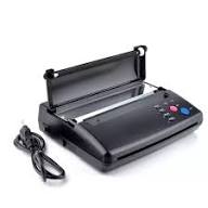 مشخصات پرینتر تتو (دستگاه استنسیل) 1- این نوع پرینتر از نوع حرارتی است. 2- حالت اسکن آن به صورت Cis است. 3- پهنای اسکن مؤثر 210 میلیمتر است. 4- برگههای در سایز A4 و A5 براحتی با آن چاپ میشوند. 5- برق مصرفی آن 110 تا 220 ولت است. 6- محتوای پک آن شامل؛ پرینتر، کابل، یک برگه کاغذ استنسیل و برگه راهنما است. 7- کاغذ استنسیل مصرفی آن سه برگی یا تک برگ است. 8- وزن آن 1/17 کیلو گرم است. 9- برگ گارانتی سه ماهه دارد. طریقه استفاده از دستگاه استنسیل دستگاه استنسیل را با دکمه کناری روشن کنید. قسمت بالایی را با فشار دادن زبانههای دو طرف دستگاه باز کنید. لایه محافظ کاغذ استنسیل سه برگی را بردارید. درست مشابه تصویر موجود در گالری کاغذ استنسیل را در آن قرار دهید. برگهای که طرح انتخابی روی آن چاپ شده را داخل دستگاه بگذارید و دکمه کپی (copy) را فشار دهید تا طرح پرینت شود. روی دستگاه بجز دکمه STOP و COPY چهار دکمه دیگر نیز وجود دارد. کارکرد آنها بدین صورت است؛ ♦ دکمه MIRROR: طرح را به صورت آینهای و معکوش چاپ میکند. ♦ دکمه PHOTO: برای پرینت عکس روی کاغذ استنسیل است. ♦ دکمه DEEPENS Ι: برای پرینت کمرنگ است. ♦ دکمه DEEPENS ΙΙ: برای پرینت پررنگ است.