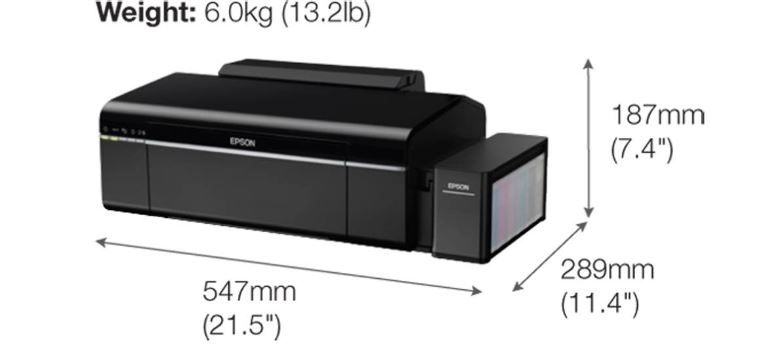 رینتر L805 دستگاه بزرگی است؛ پس باید برای آن فضای بزرگی در نظر بگیرید. عرض این دستگاه به 54 سانتیمتر میرسد که کمی بیشتر از نیم متر است! توصیه میکنیم که این دستگاه را روی فضای اصلی میز کارتان قرار ندهید؛ زیرا چیزی از آن باقی نخواهد ماند. بهتر است این پرینتر را در نزدیکی میز خود، روی میز کوچکی قرار دهید. این دستگاه علاوهبر سایز بزرگ، وزن زیادی هم دارد که به حدود 6 کیلوگرم میرسد. دستگاه از بدنهای تمام مشکی و کمی هم براق ساخته شده است. تانکر جوهر این پرینتر در قسمت چپ دستگاه قرار گرفته است که 6 رنگ را شامل میشود. این تانکر از بدنه جدا شده و با بازکردن آن، میتوانید جوهرش را دوباره پر کنید.